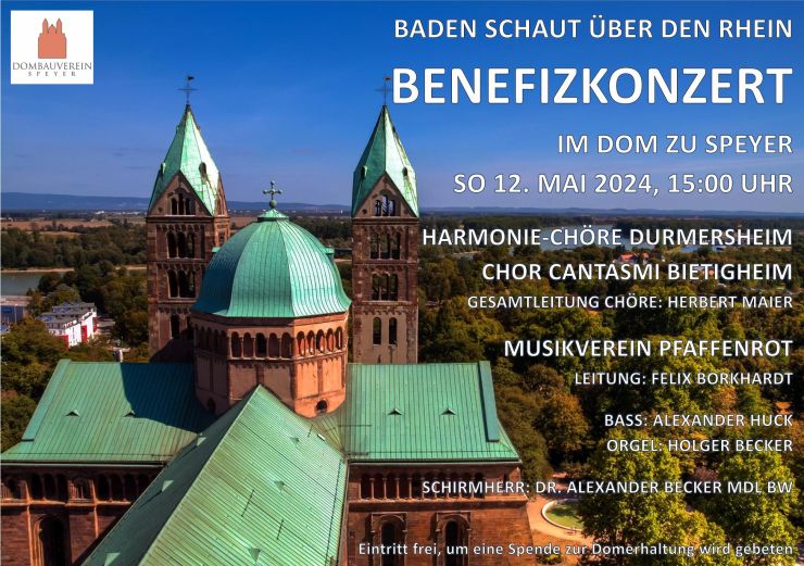 Das Konzert „Baden schaut über den Rhein“ am 12. Mai im Speyerer Dom mit dem Bietigheimer Chor Cantasmi des Gesangvereins Frohsinn, den Harmoniechören Durmersheim sowie dem Musikverein Pfaffenrot war ein musikalisches Erlebnis der Extraklasse. Unter der Schirmherrschaft von Dr. Alexander Becker (MdL BW) begeisterten die Chöre und Musiker das zahlreich erschienene Publikum mit einem breiten Repertoire.
