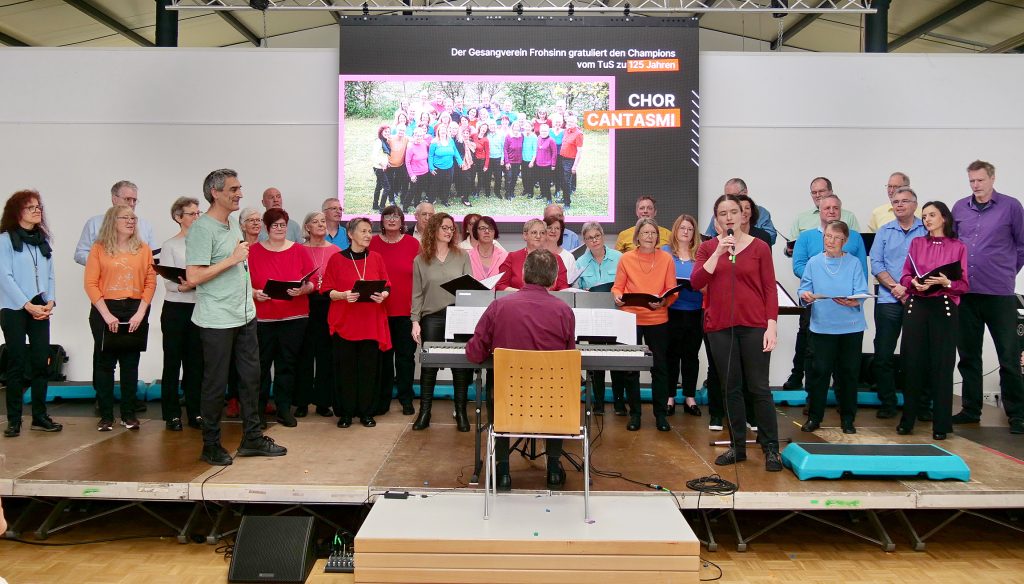 Ein Fest, das einem Turn-und Sportverein würdig und rundum gelungen war. Der Chor Cantasmi war eingeladen, das musikalische Rahmenprogramm zu gestalten. Mit viel Spaß und Freude begleitete der Chor diesen besonderen Anlass.